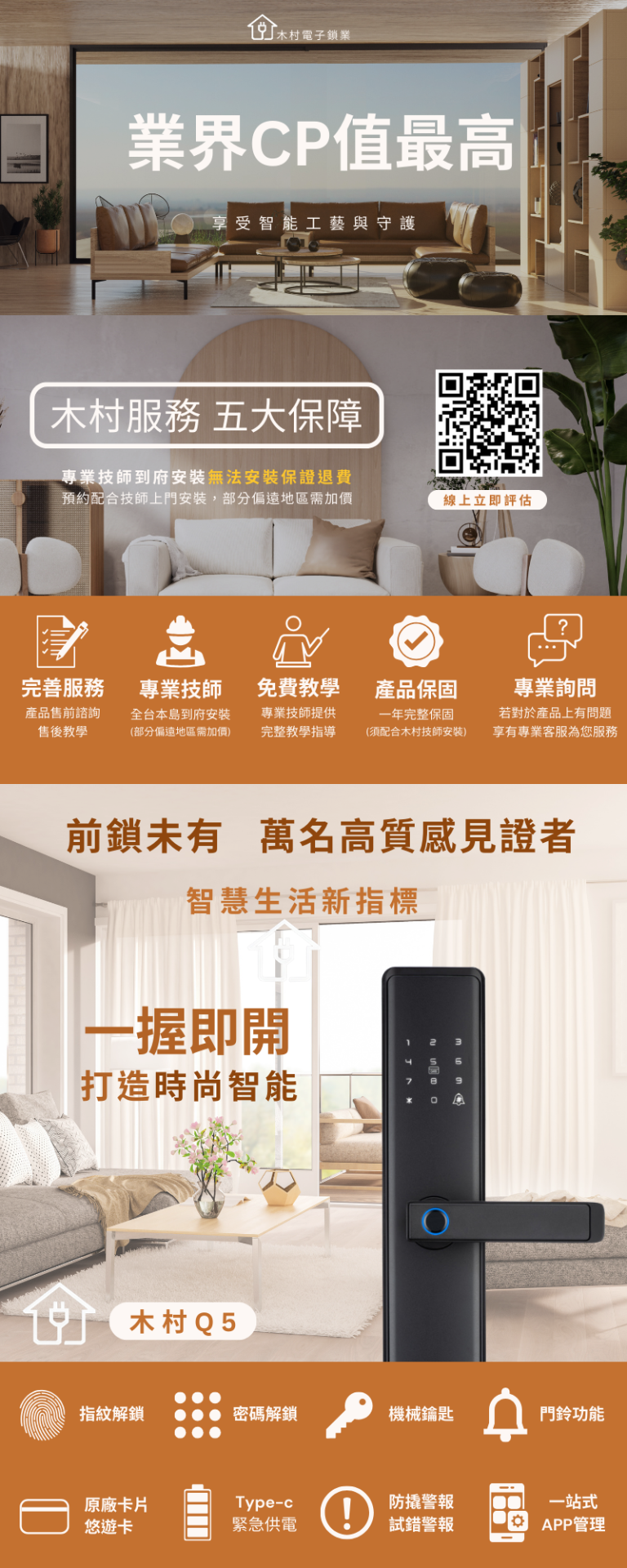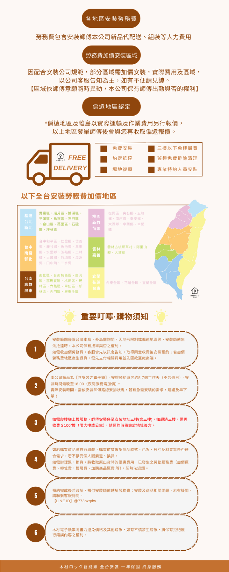 專業的鎖匠到府安裝,購買後起算保固一年。
